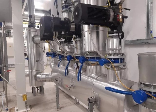 The main components of a polygeneration system are the CHP unit, which produces electricity and heat in the form of hot water, the absorption chiller, which converts the heat from the cogeneration module into cold, and the steam generator, which uses the heat contained in the flue gases to produce process steam with different parameters, depending on the customer's needs