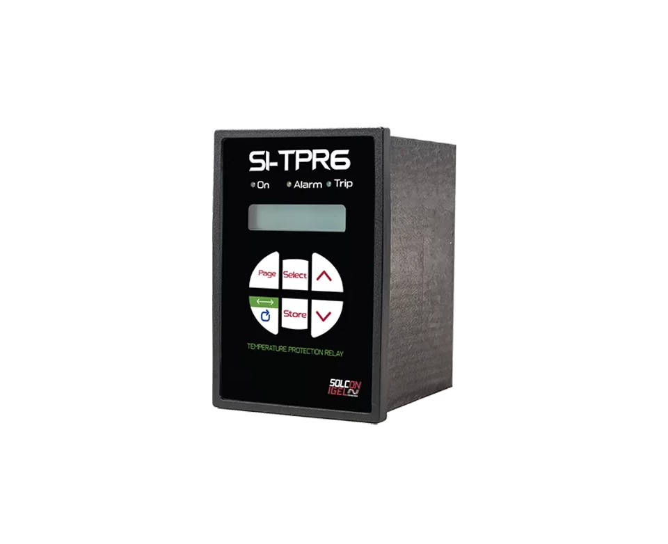 SI-TPR6 is designed to protect motors, transformers and other systems from overheating. The SI-TPR6 has up to 14 temperature inputs that can be programmed to measure thermistors (PTC or NTC) and RTDs (Pt100).