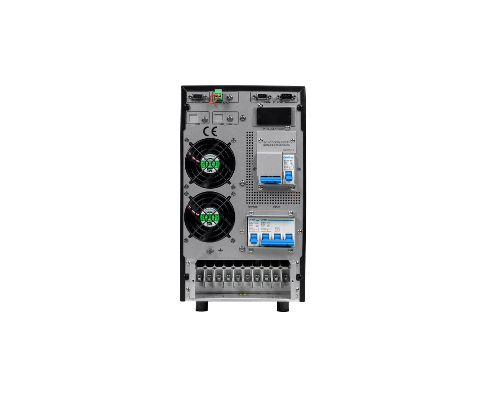 Rear view of a 10 kVA UPS with description